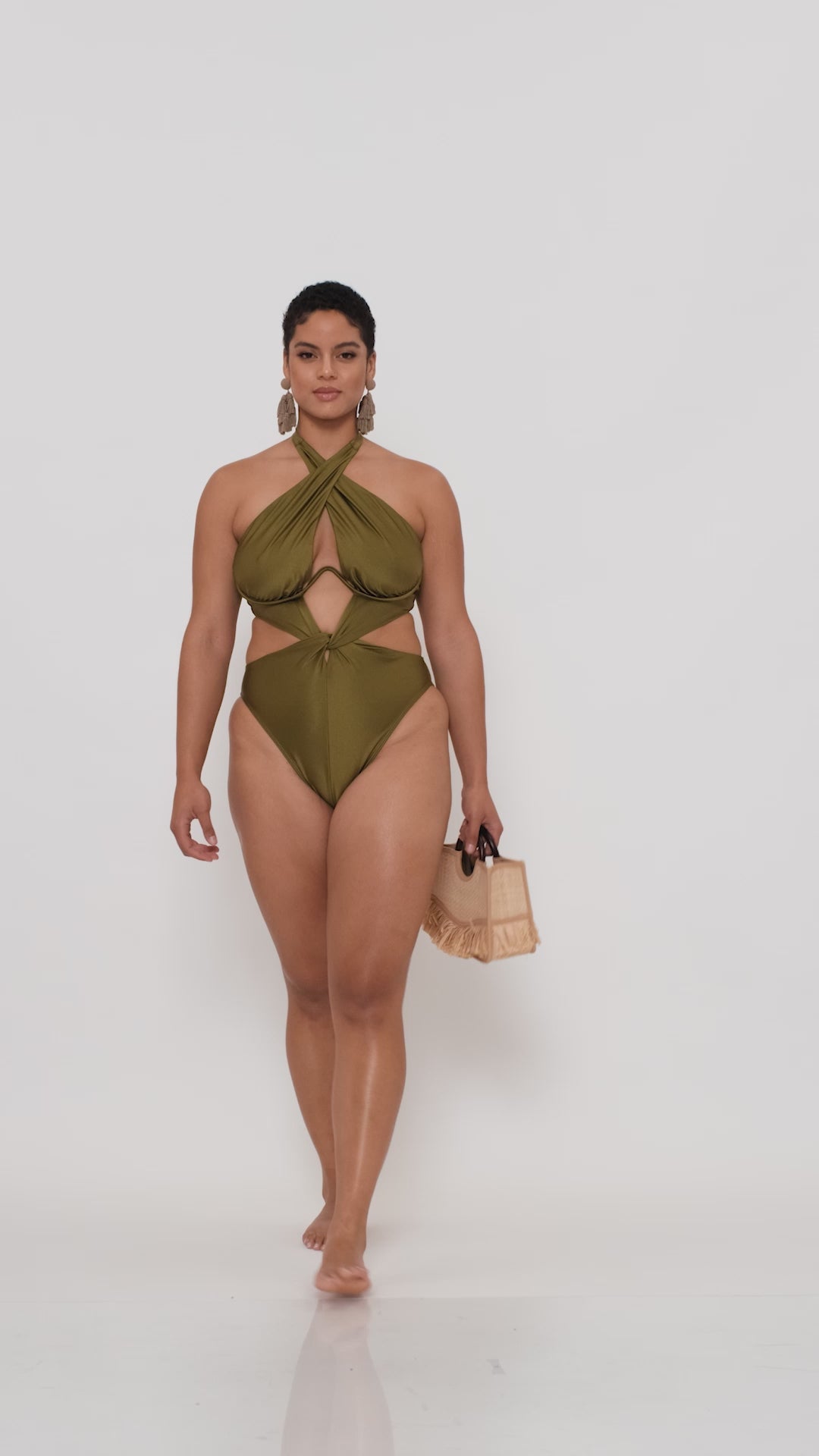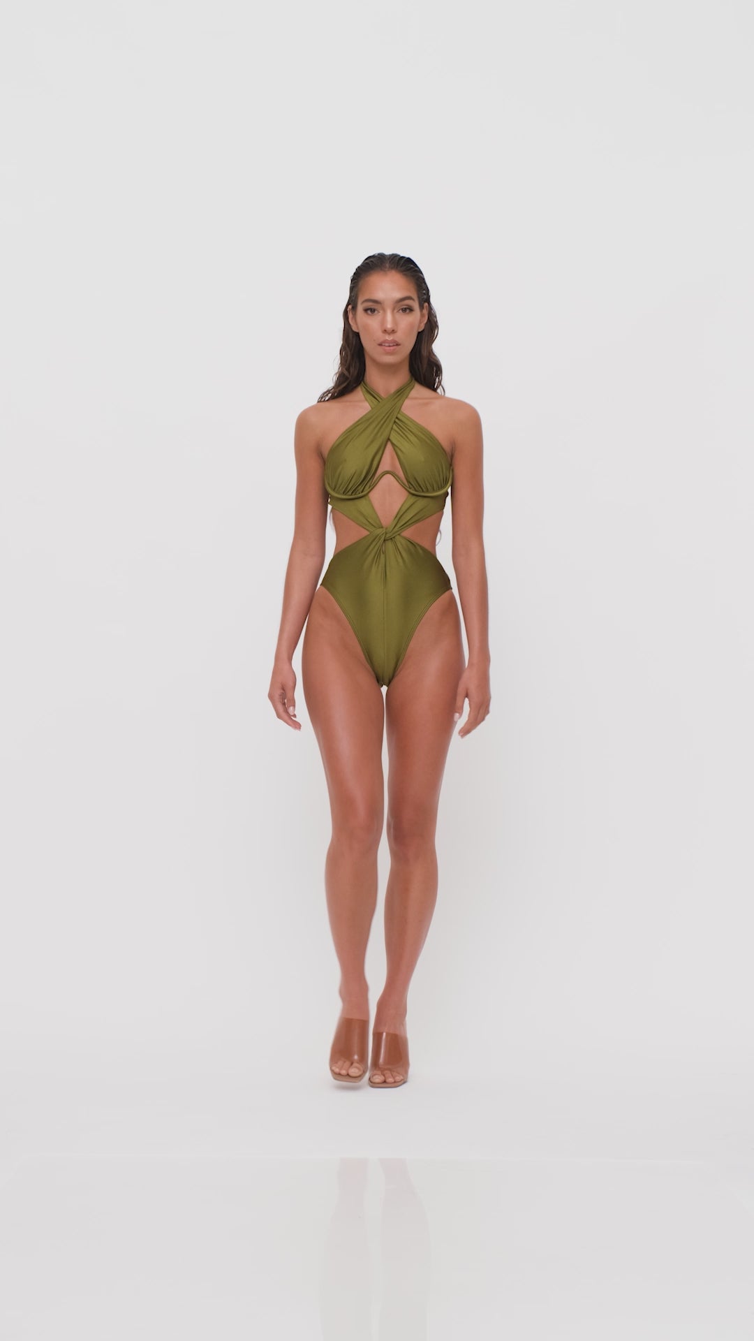 The NAYO one piece is that elegant swimsuit with cutouts that show just the right amount of skin. Its distinct twist detail highlights the midriff pleasantly concealing the sensitive areas. Its halter tie and W under provide adjustable bust support.