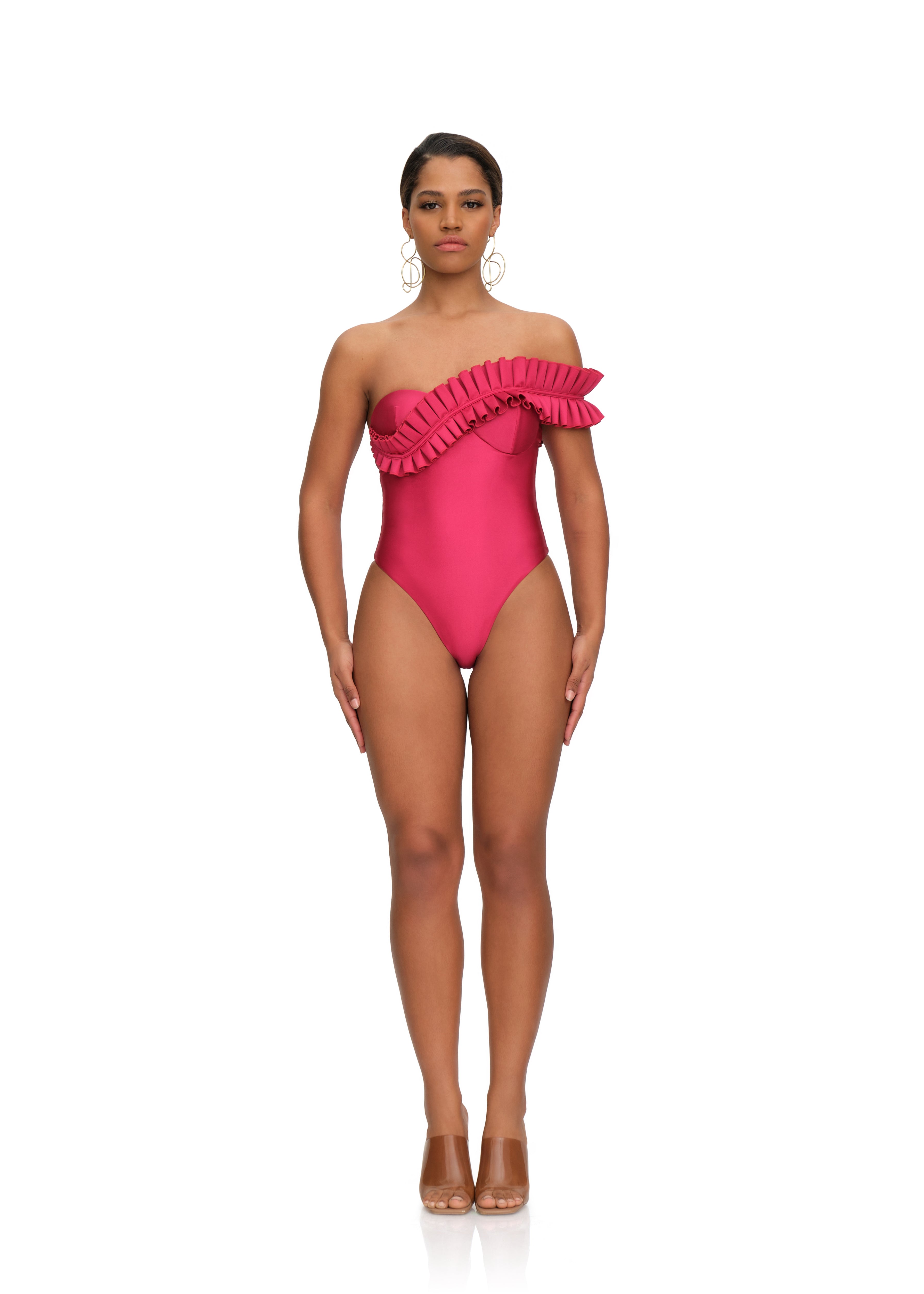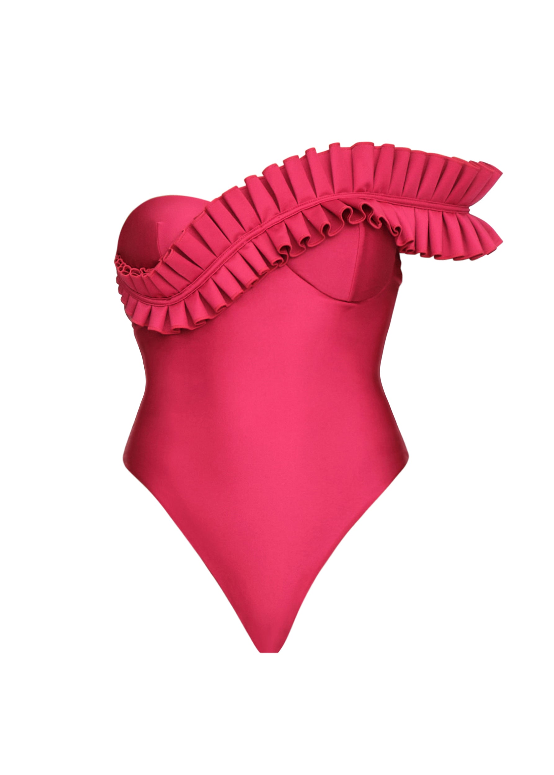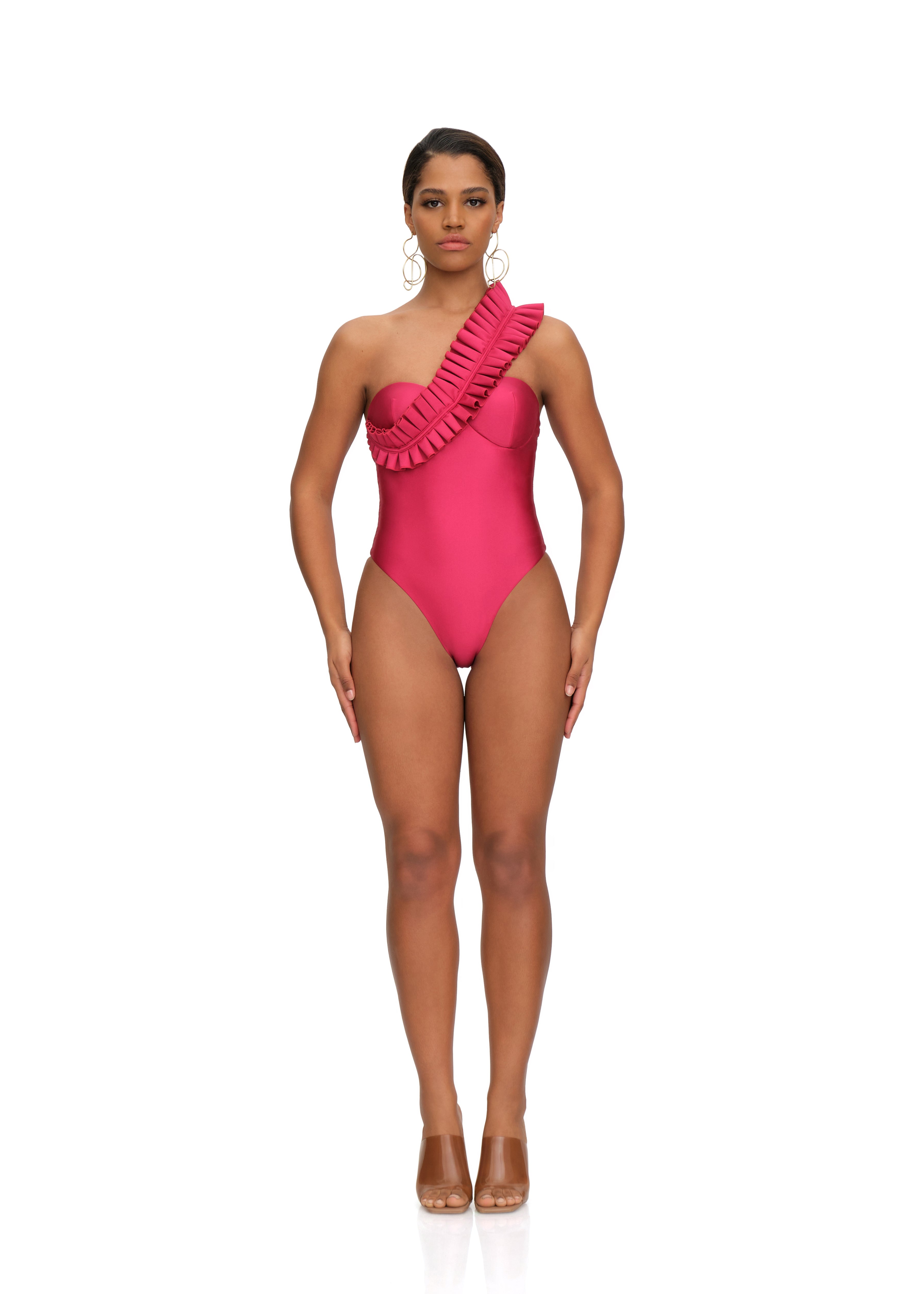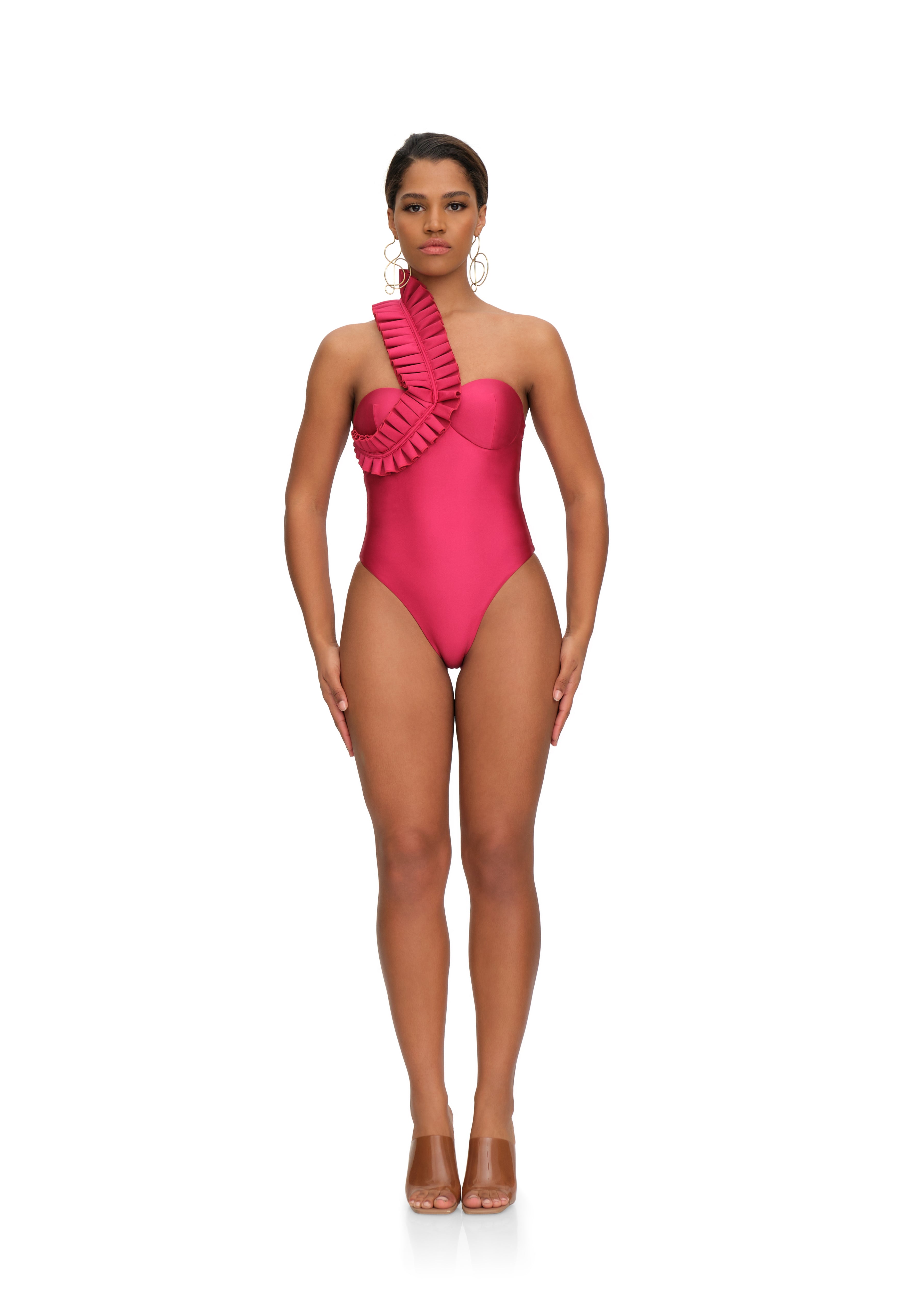 The NISI one piece is inspired by the growth pattern of vine plants and the signature A.I. leaf motif. A one piece, retro high cut bathing suit that accentuates the feminine figure. It's the versatile mono strap bathing suit you need in your closet, with built in underwire and padded cups, it has the support you need.