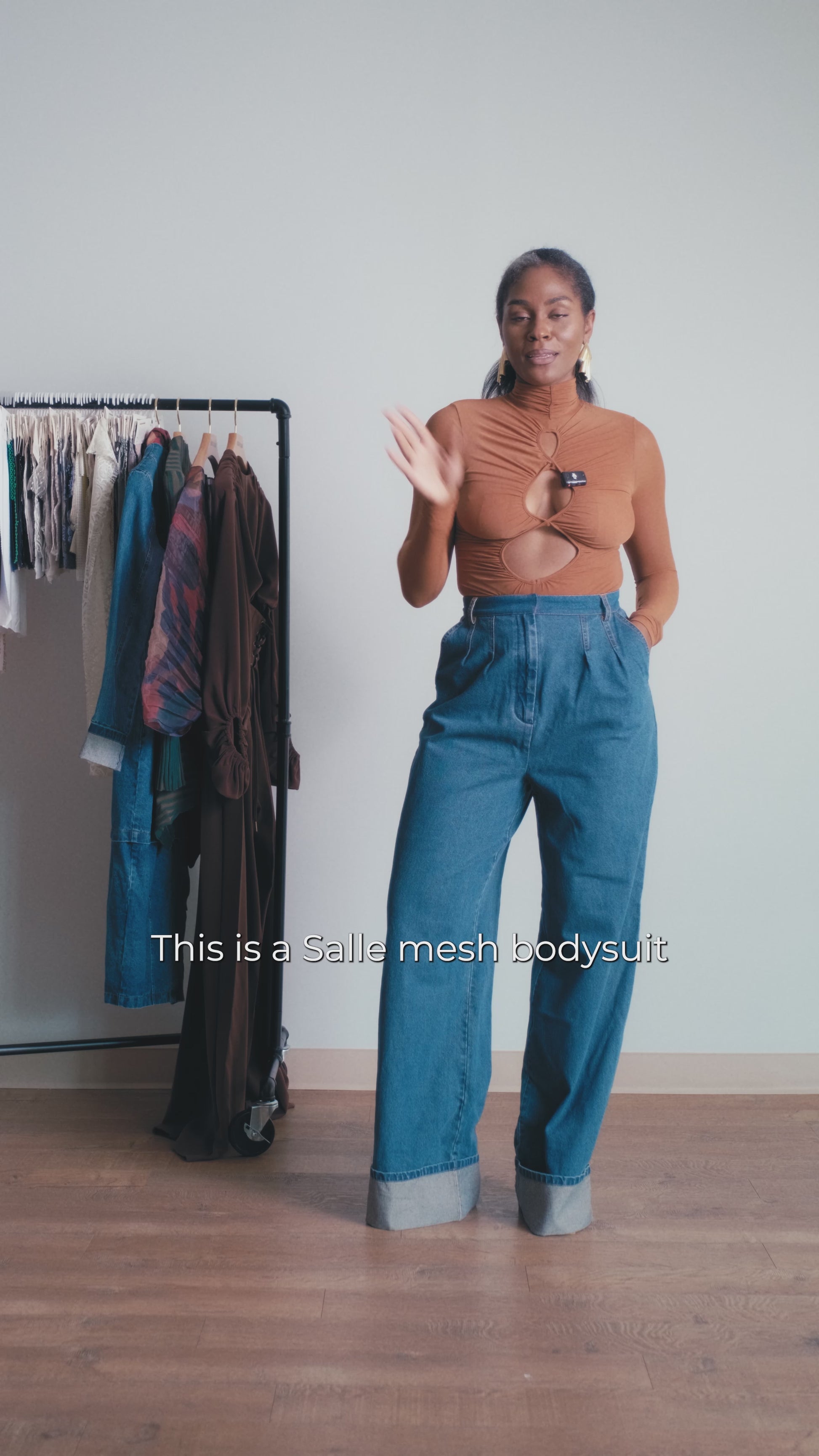 The Salle Mesh Bodysuit is a simple statement, a complementary piece, designed to accompany your look. Crafted from soft mesh, this fitted bodysuit features a mock neck and a center-front neckline adorned with ruching and three striking keyholes, each cleanly finished with binding and surrounded by elegant gathers for added dimension. The sleeves are fitted with ruched detailing at the wrists, creating a refined silhouette. A nylon thong panty with three snaps ensures a smooth finish, while the double-lap zipper at the back neck opening adds a touch of practicality and style. The Salle Mesh Bodysuit is the ultimate fusion of artistry and versatility, perfect for pairing with high-waisted VIRA PANTS or the NEVY DENIM PANTS.