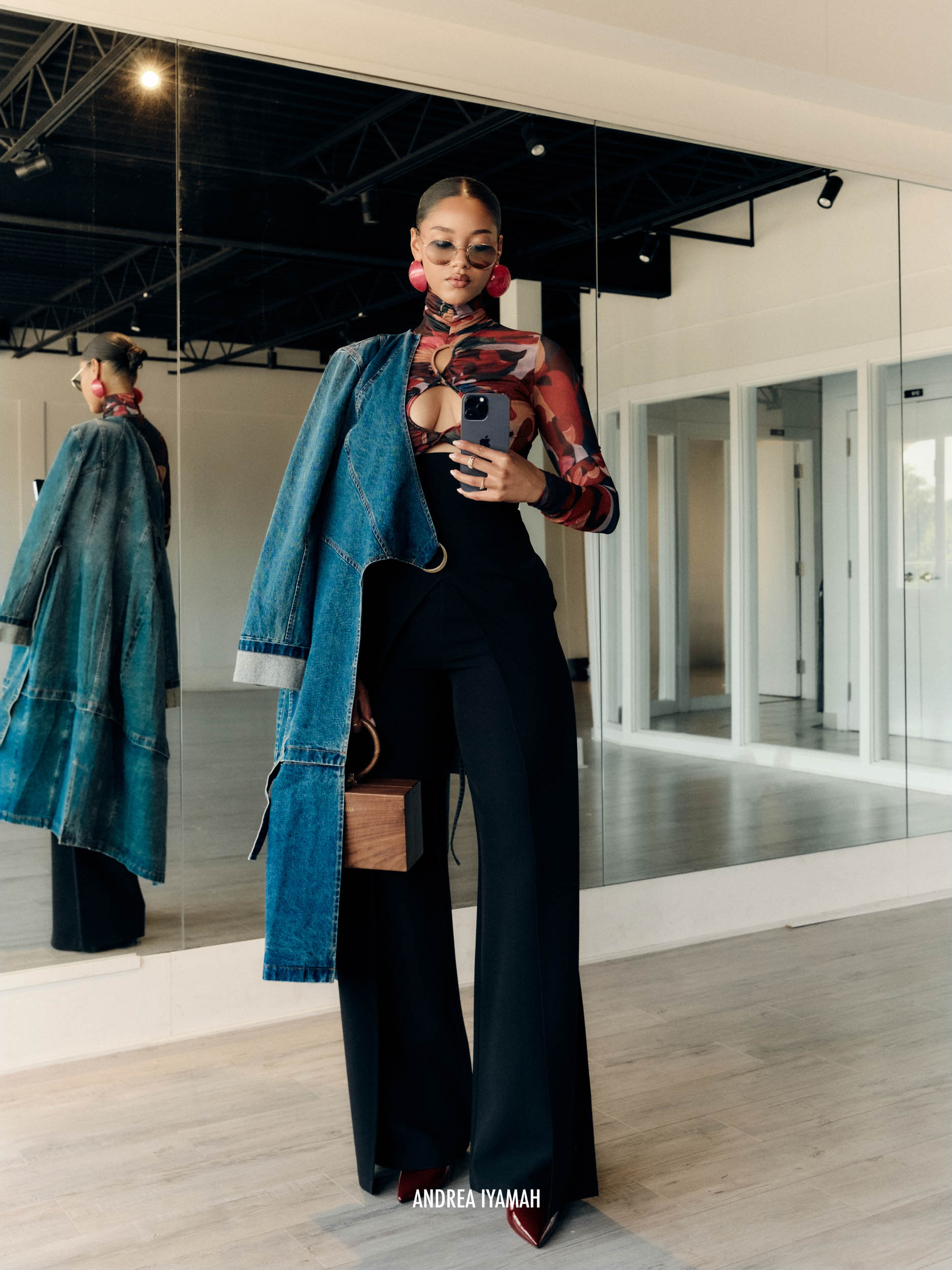 The Salle Mesh Bodysuit in the Lewe Print is a simple statement complementary piece, designed to accompany your look. Crafted from printed mesh, this fitted bodysuit features a mock neck and a center-front neckline adorned with ruching and three striking keyholes, each cleanly finished with binding and surrounded by elegant gathers for added dimension. The sleeves are fitted with ruched detailing at the wrists, creating a refined silhouette. A nylon thong panty with three snaps ensures a smooth finish, while the double-lap zipper at the back neck opening adds a touch of practicality and style. The Salle Mesh Bodysuit is the ultimate fusion of artistry and versatility, perfect for pairing with high-waisted VIRA PANTS or the NEVY DENIM PANTS.