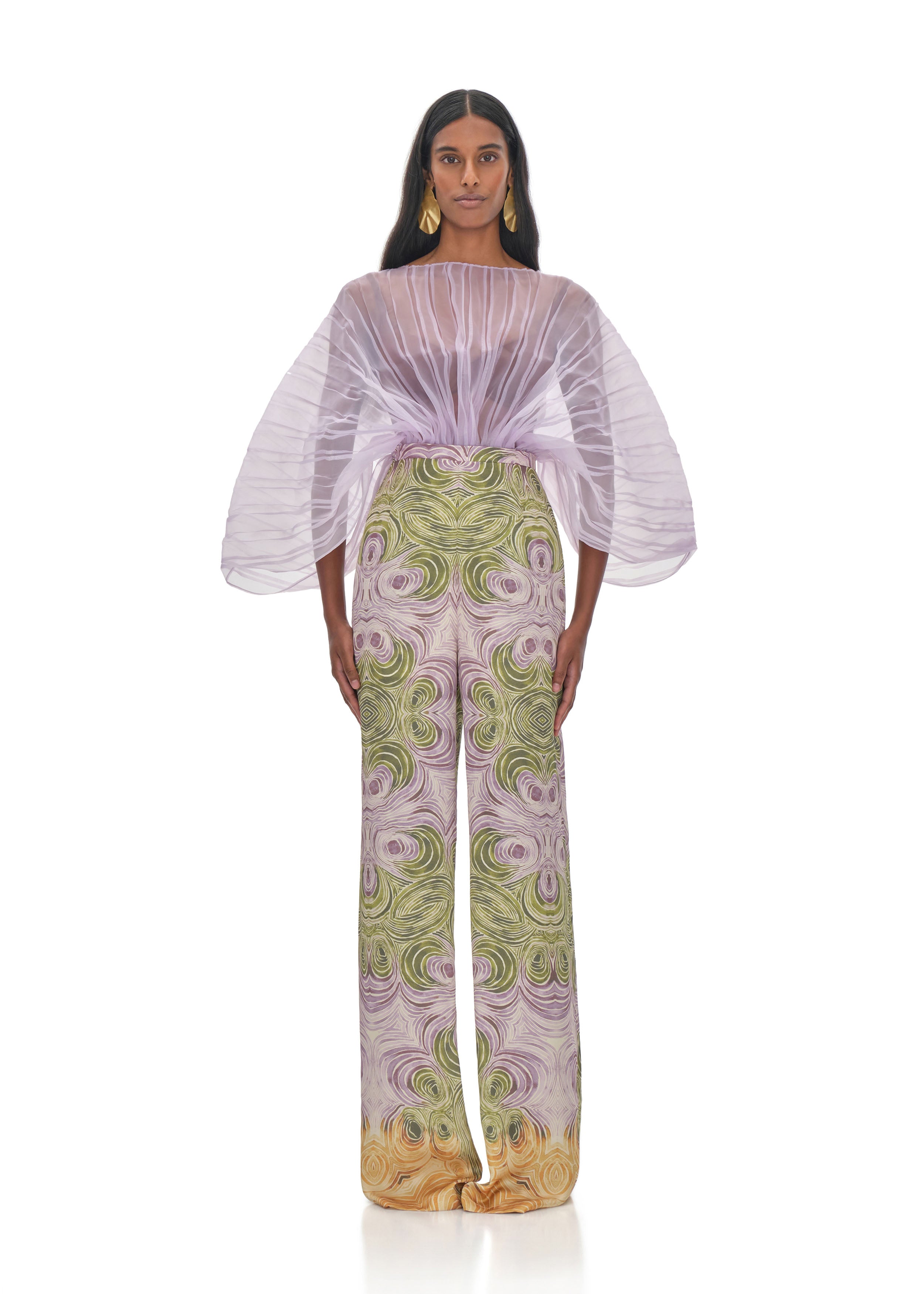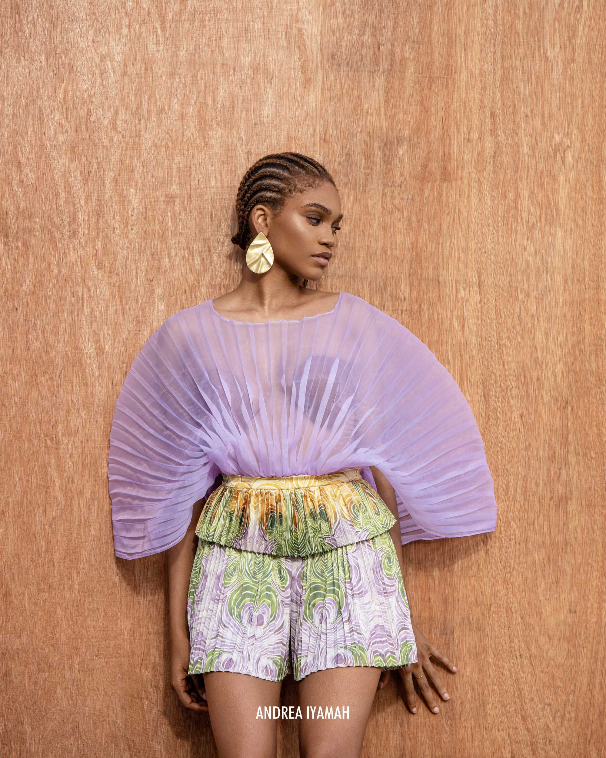 The SOMBRA leotard is a sculptural masterpiece. Playing on the delicate nature of organza and the textural appeal of pleats this style was inspired by the unique patterns and proportions of mushroom caps. The SOMBRA leotard features an inner knit leotard layer with a convenient snap closure. Confidently pair the SOMBRA leotard with our AKACIA pleated shorts.