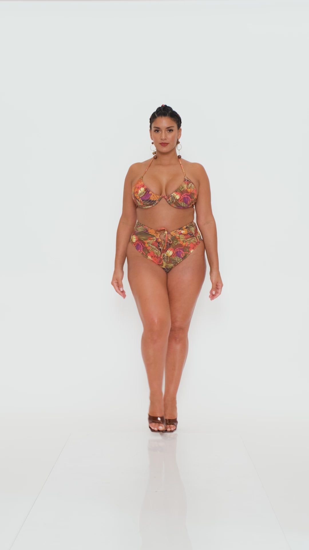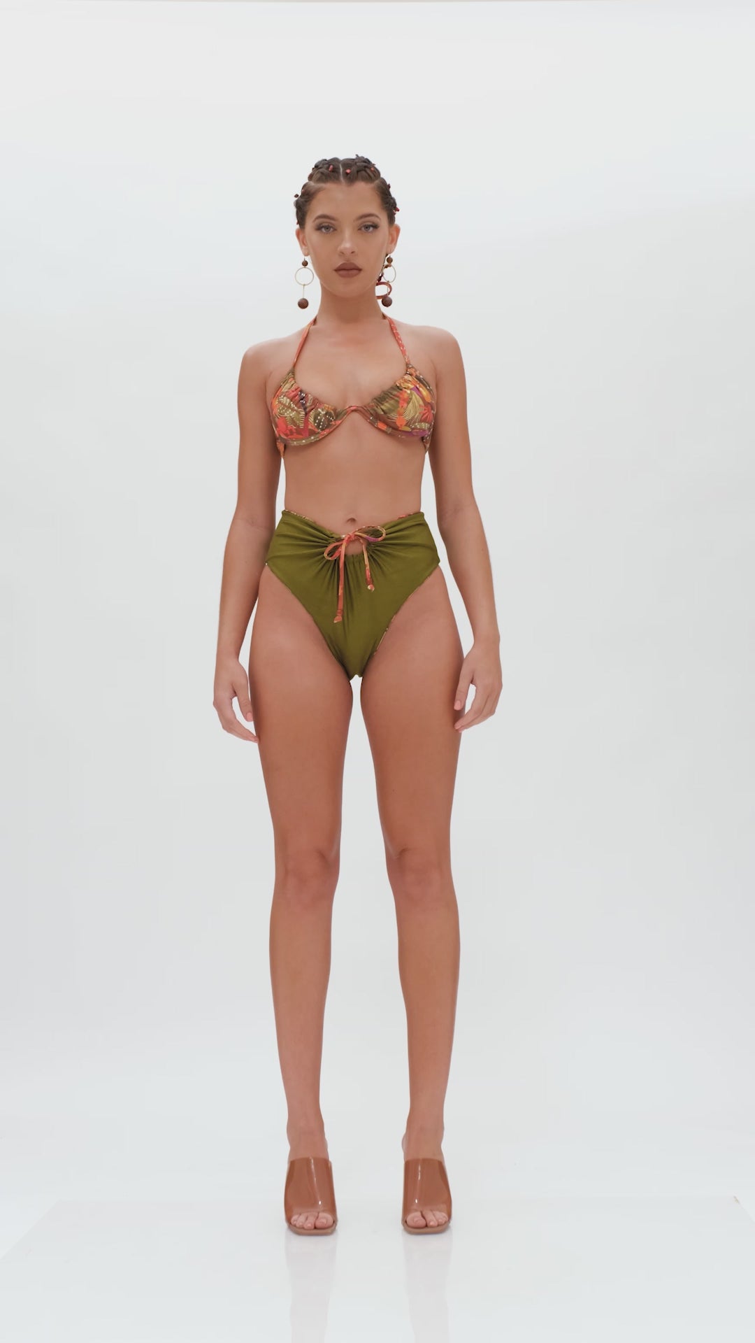 The UWA BIKINI has versatility at the top of its intricate design. Another 4 in 1 bikini, this cut is classic high rise bottoms with a keyhole detail, w underwire for bust support, reversible print/solid panels in the cups and bottoms for mixing and matching. With the quality of this matte nylon fabric, this piece is slated to stand the test of time. Complete the look and pair with the KOKOS SHORTS in KOLA PRINT.