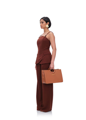 The VARU TOP is the ANDREA IYAMAH take on a vest suit top. Designed with thin straps capped off with delicate beads in graduating sizes, princess seams that show off superb tailoring and pocket flaps that categorize this as the piece that elevates the outfit...this style is timeless.