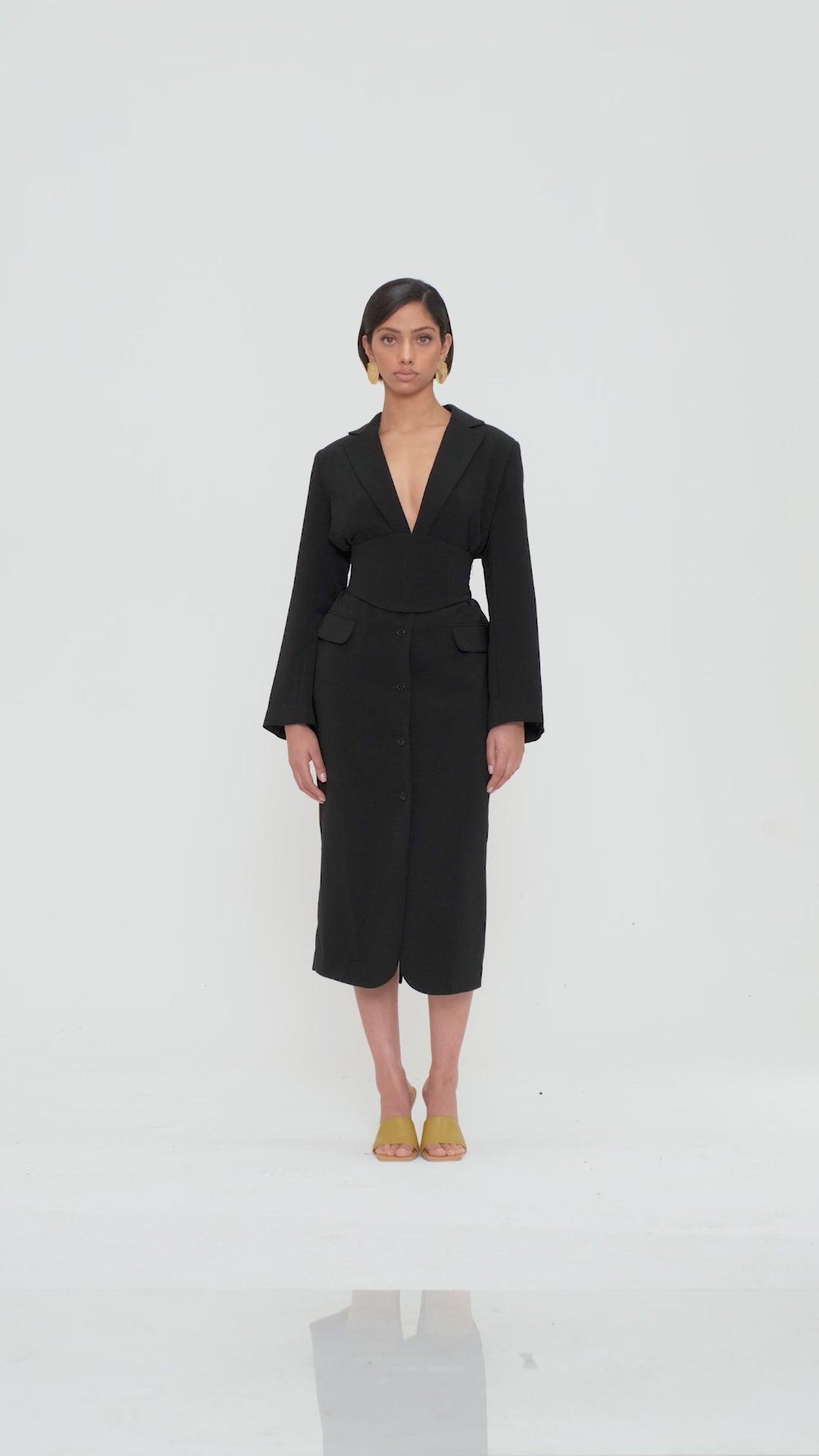 The ZIA CORSET BLAZER DRESS is a classic, designed to back up the confidence of the wearer. Tailored to a loose fit without the belt and a fitted look with its accompanying belt, this look has comfort and versatility at its best.